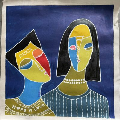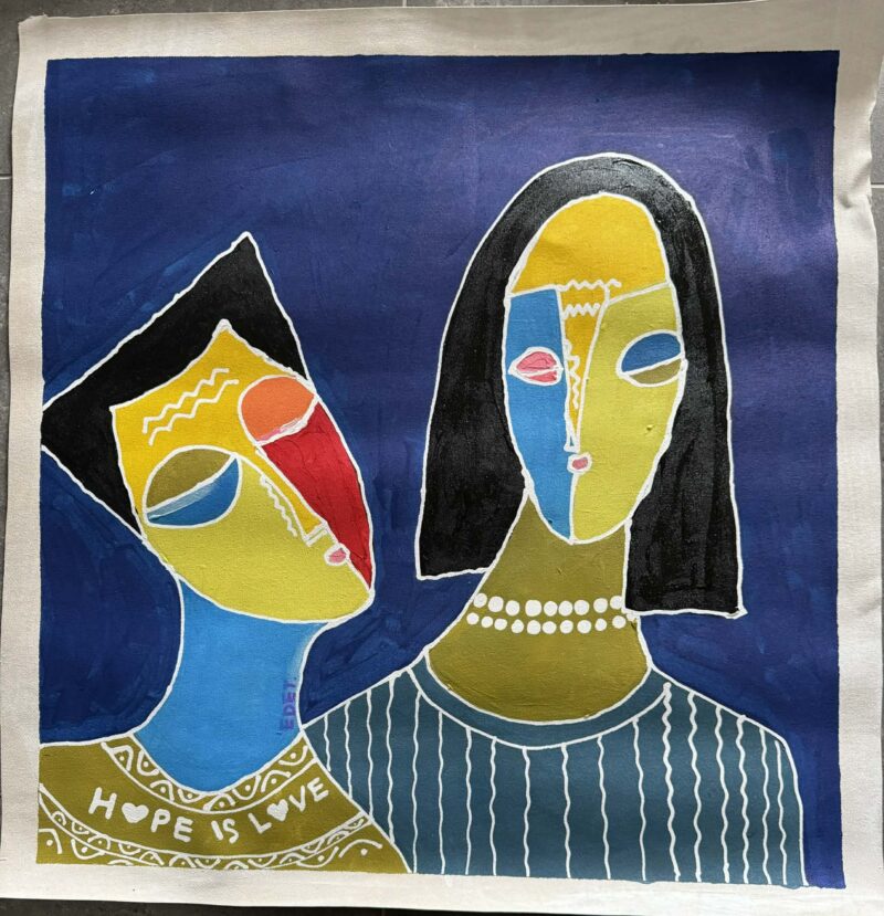 This painting is created by Edet, who was rescued in 2016. The rescue of Edet was depicted in the documentary “Anja and the Witch children”.
