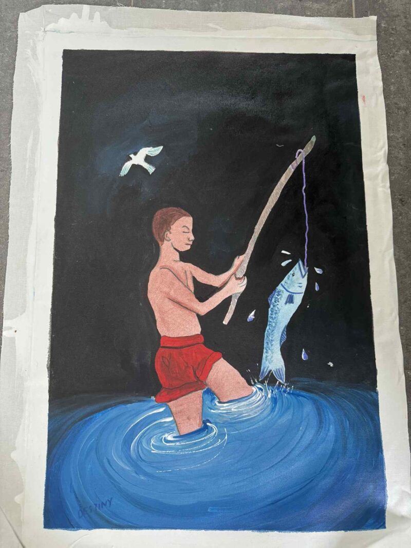 Kunst har en terapeutisk virkning for alle børnene på Land of Hope. Igennem kunsten kan de udtrykke deres følelser af svigt og savn, som kan være svære at sætte ord på. Især for børn. Når du køber et maleri af Destiny, giver du ham en stemme i en verden, der ellers ikke lytter – og det er i sig selv en enorm helende og kærlig gestus over for ham.