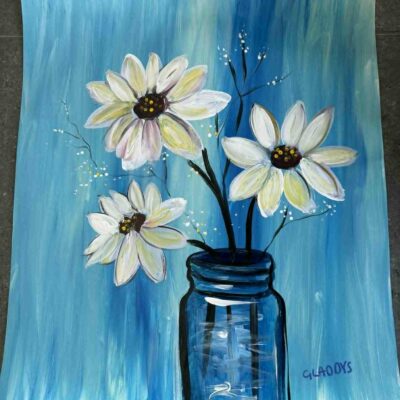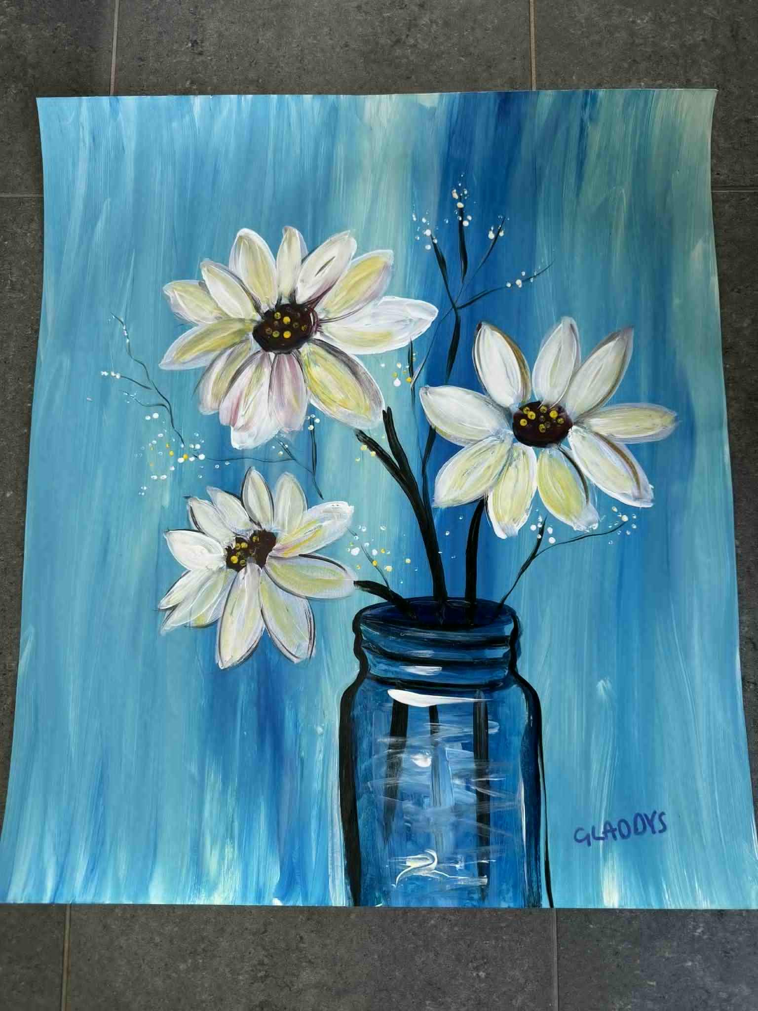 Kunst har en terapeutisk virkning for børnene på Land of Hope og er især helende for traumer. Gennem kunsten kan børnene udtrykke det, de føler indeni, som kan være svært at tale om. Når du køber Gladys’s maleri, giver du hendes fortælling og stemme en plads i verden. Hun vil være så stolt af at vide, at hendes maleri betyder noget for dig.