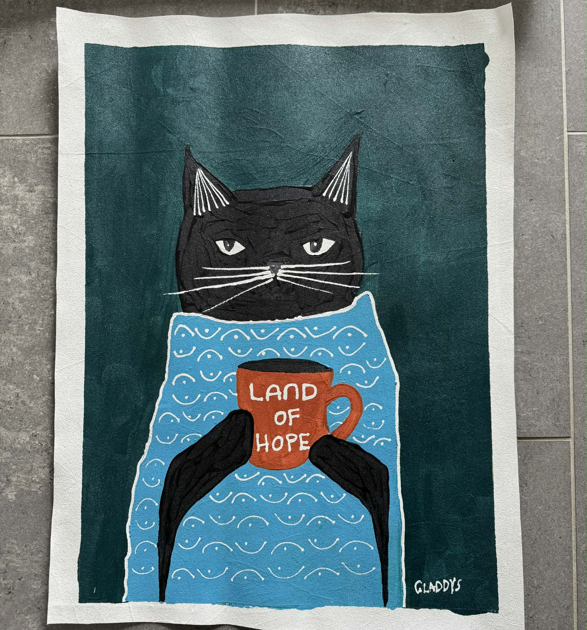 Dette maleri er skabt af Gladys, som Land of Hope reddede for 8 år siden.
