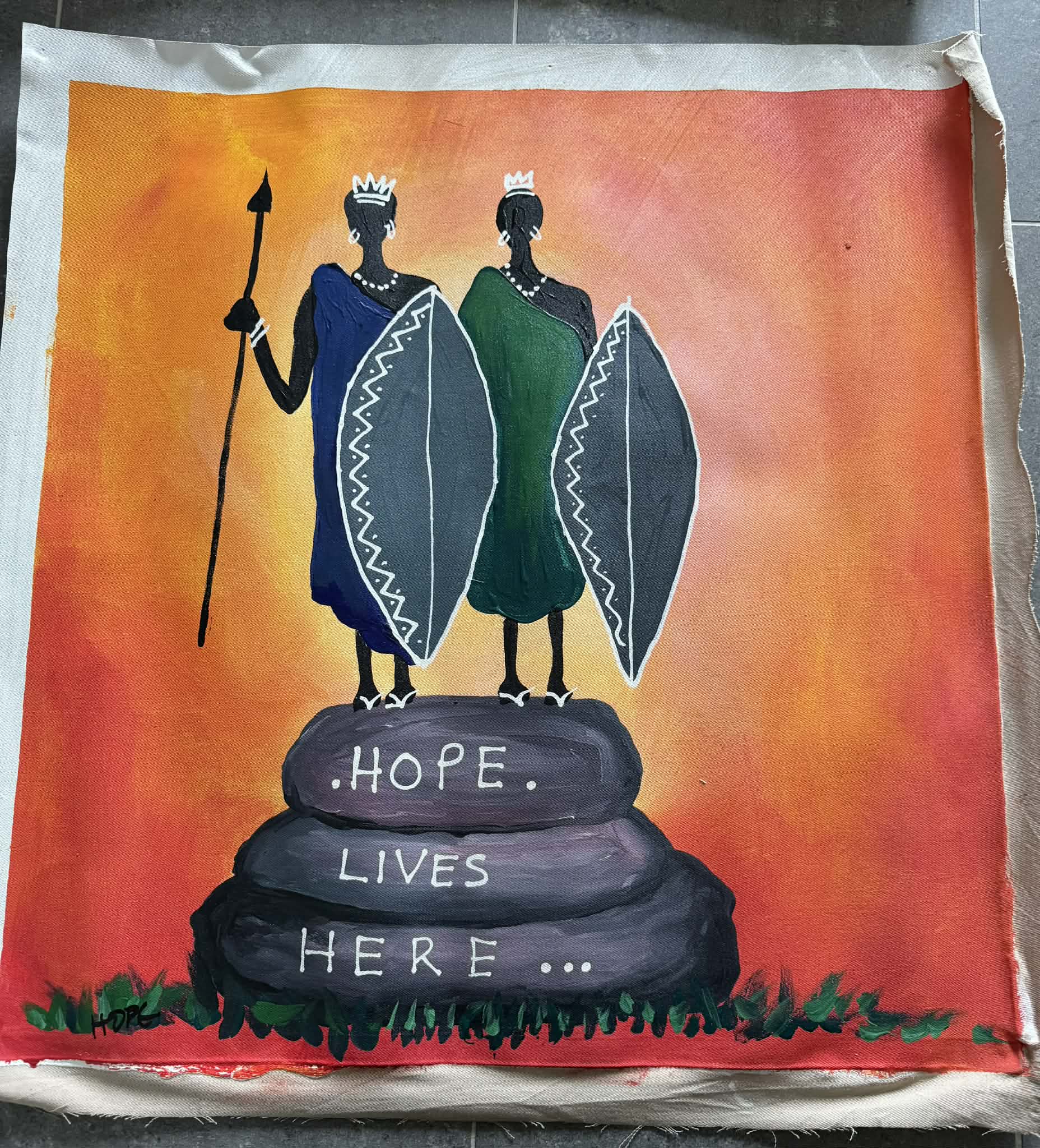 Dette maleri er skabt af Hope, som Land of Hope reddede den 30. janaur 2016.