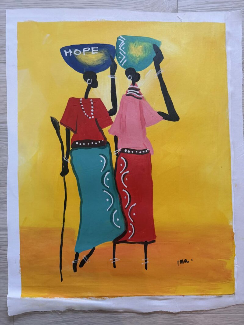 Kunsten er et terapeutisk værktøj for børnene på Land of Hope. Når de maler, kan de udtrykke indre billeder og følelser, som de måske ikke har lyst til at fortælle i ord. Køber du et maleri af Imaobong, så giver du hende en stemme og viser, at der er plads til hende og hendes fortælling her i verden. Det er i sig selv en kærlig gestus.